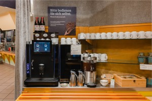 Our fully automatic coffee machine prepares our specialty coffees for you using only selected coffee varieties and organic milk—lactose-free options are also available on request. Or with vegan oat milk. All specialty coffees are also available decaffeinated.